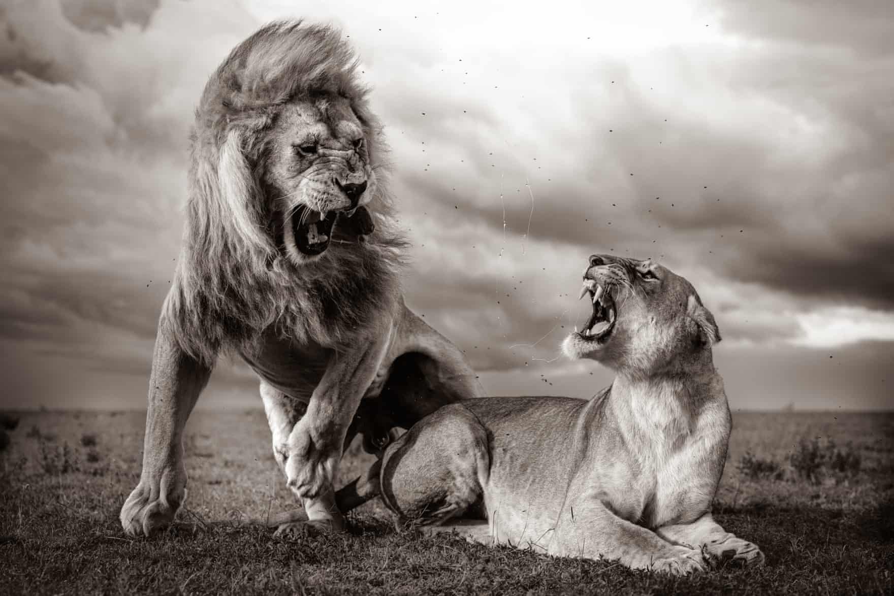 Giông bão, nhiếp ảnh gia William Fortescue, Vương quốc Anh. Đó là mùa mưa ở đồng bằng Namiri thuộc Công viên quốc gia Serengeti, Tanzania, khi anh quan sát những con sư tử giao phối nhiều lần trước khi con cái rời đi