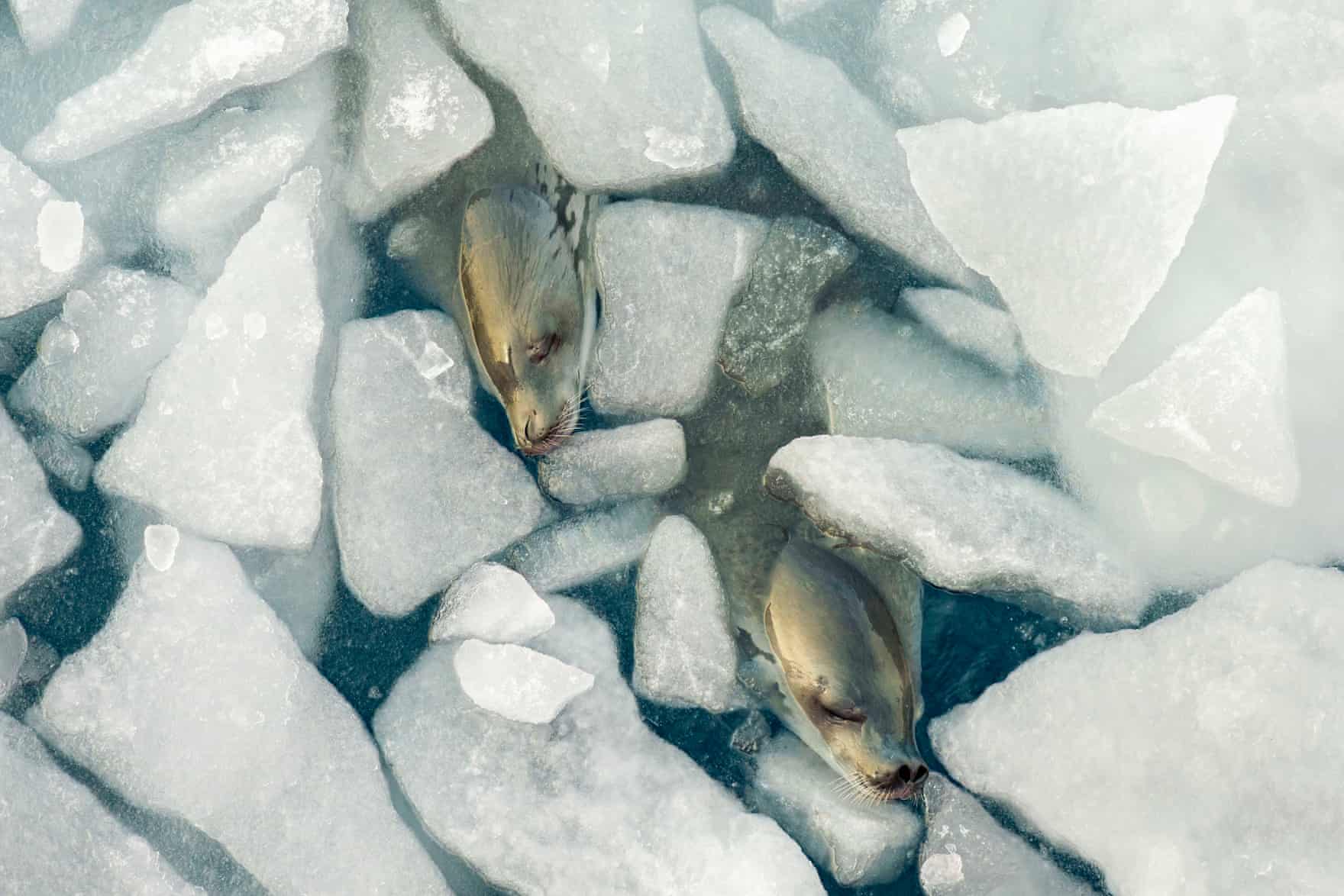 Đi cùng của nhiếp ảnh gia Tamara Stubbs, Vương quốc Anh. Trong một khoảnh khắc nổi bật trong chuyến thám hiểm kéo dài 9 tuần của Atlantic Productions ở biển Weddell, tác giả nhận thấy hải cẩu đã ngủ dọc theo con tàu, với chóp lỗ mũi của chúng ở trên mặt nước. Hai hải cẩu này đã đứng dậy để có thể hít thở sâu hơn. Có khoảng bốn triệu con hải cẩu ăn cua ở Nam Cực