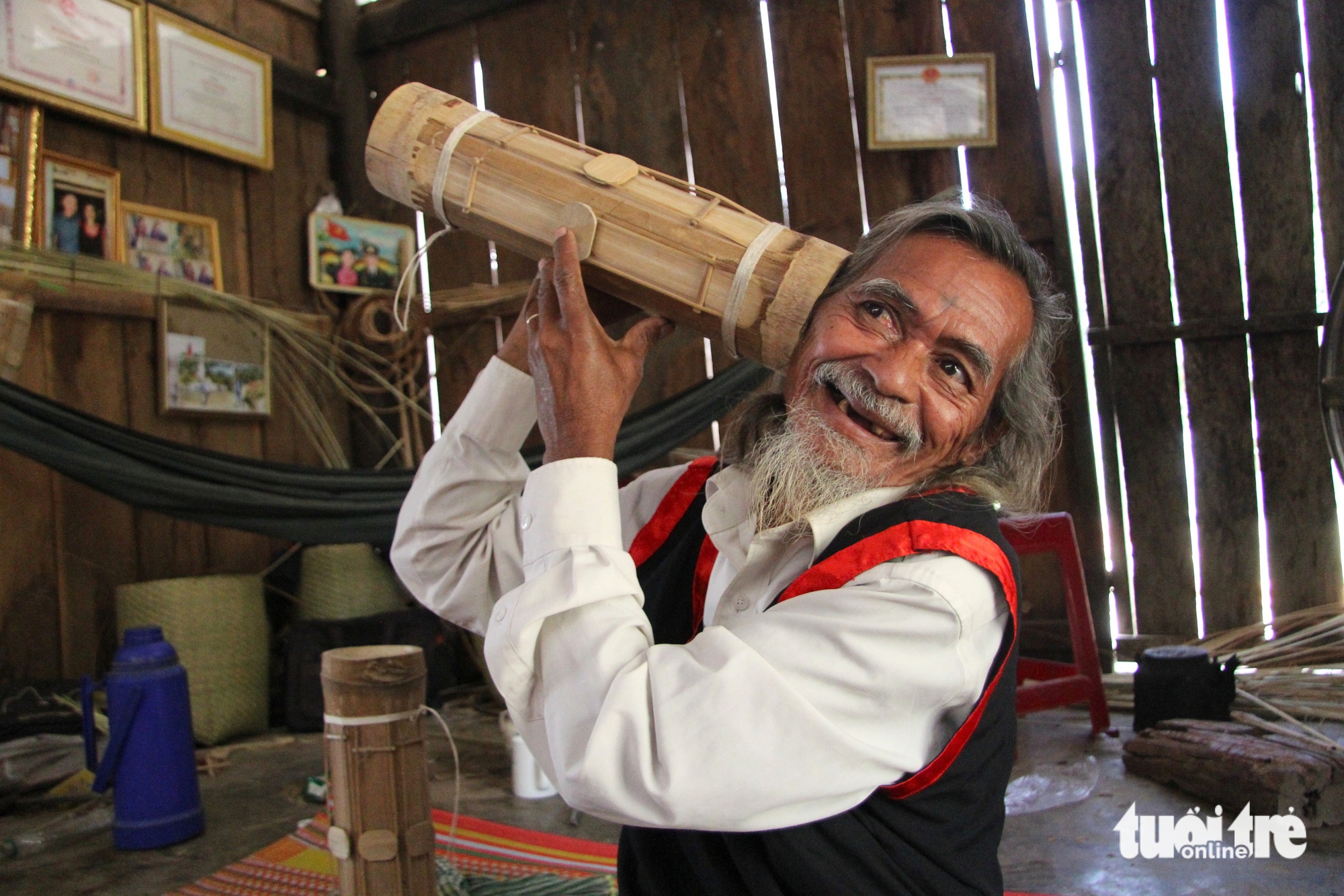 Hiện nay, ông Chamalea Âu là một trong số ít người Raglay chế tác được đàn Chapi và nhiều loại nhạc cụ Raglay khác - Ảnh: ĐỨC CƯỜNG
